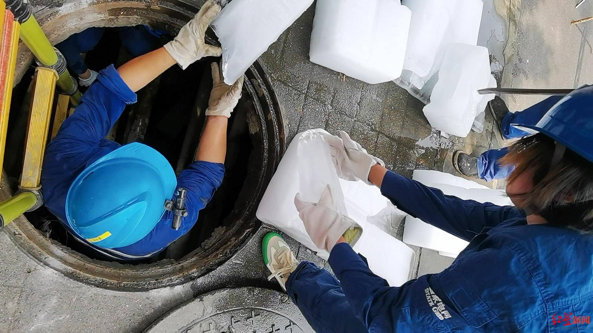 物理降溫!千斤冰塊運至電纜井底,半小時降溫3℃