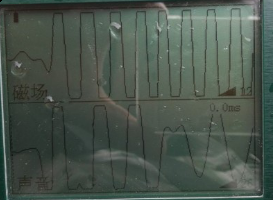 3、用低壓脈沖測試,電纜全長為162米。相間對比在18米左右波形不匹配。用脈沖電流測距,紅相對零線,電壓5KV擊穿,波形顯示故障在距測試端18.7米左右,在配電室南面的綠化帶定位,聽到放電聲。
